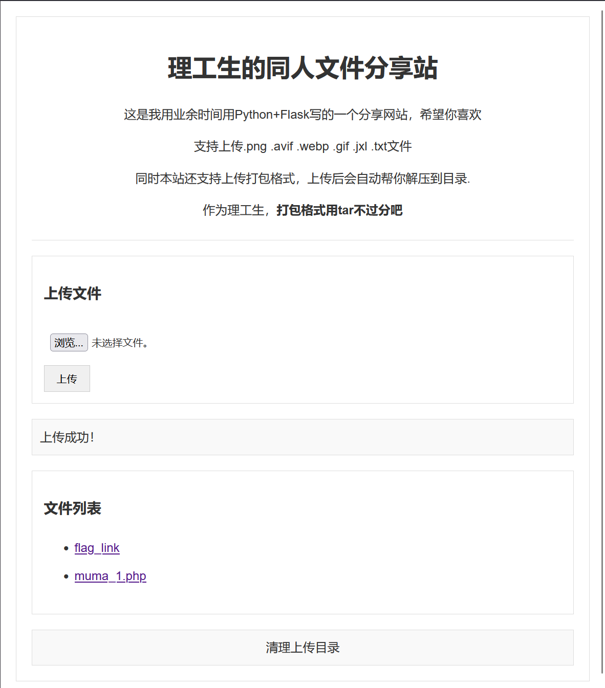 但上传后,系统回显这句话,暗示你:“别在上传上纠结了,去想想怎么让这个文件被 include 进来!”